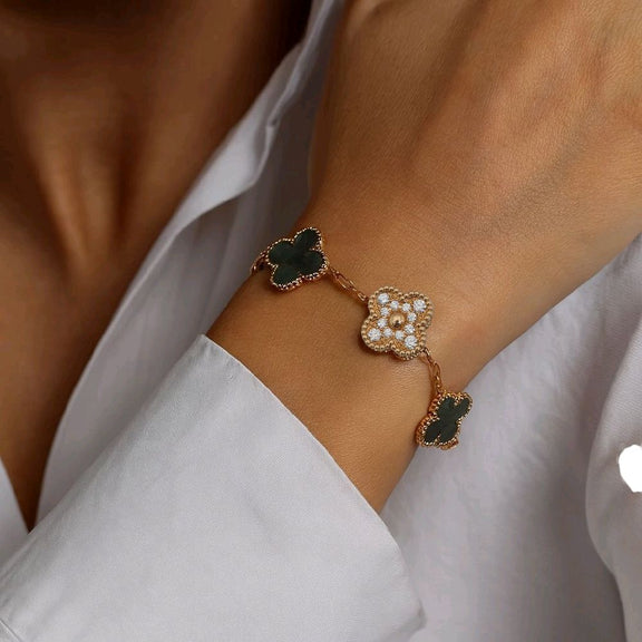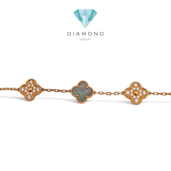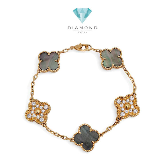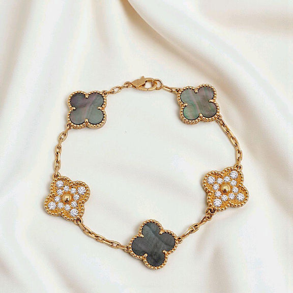 Clover bracelet made with grey pearl and diamond and 18k gold