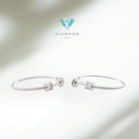 Diamond earring hoop 18k white gold-Diamond Jewelry