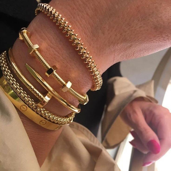 Screw Ecreu Bangle White Gold 18K-Diamond Jewelry-385GBD15000LS-HT