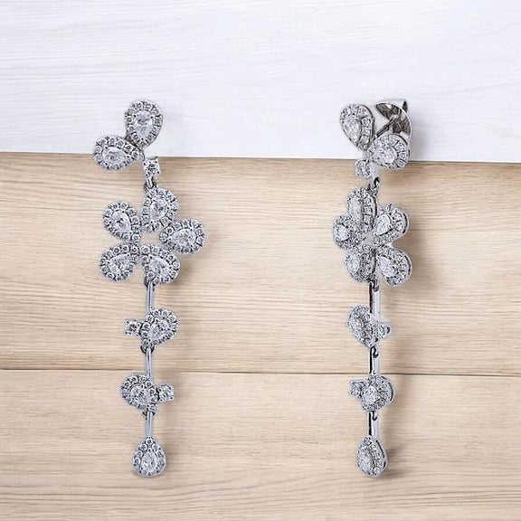 Flower Long Diamond Earring 18K / Diamond Jewelry 15AB26000LS