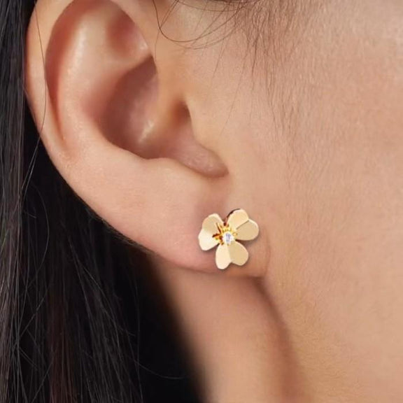 Diamond earring inspired by flower with diamonds made with 18k gold