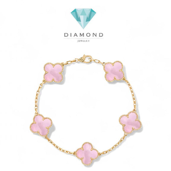 Mop Clover Alhambra Pink Pearl Bracelet 18K Gold-Diamond Jewelry-77GBD69000ABLS-HT