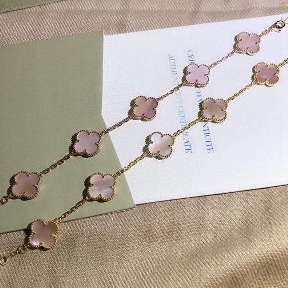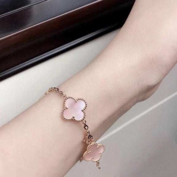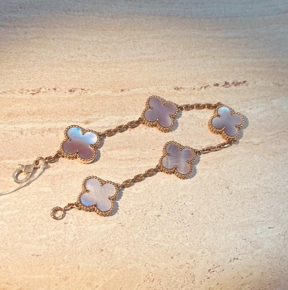 Mop pink pearl clover vintage collection bracelet made with 18k rose gold
