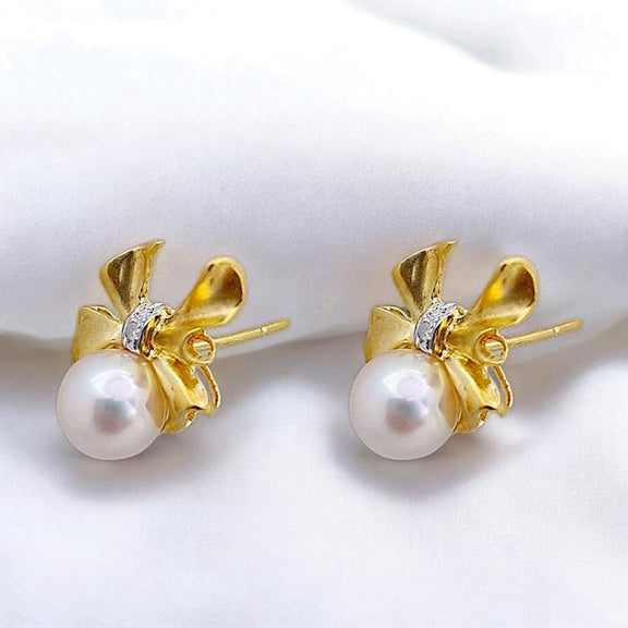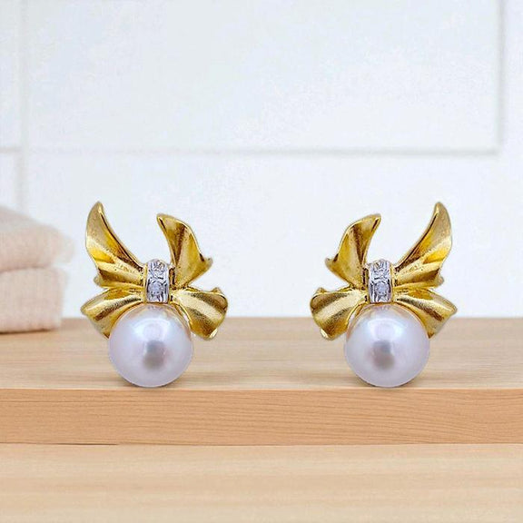 Ribbon Pearl Diamond Earring 18K / Diamond Jewelry 42AMGT1100WP