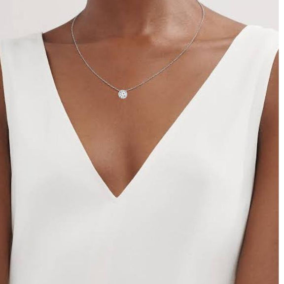 Solitare Diamond necklace GIA pendant with halo looks elegant and luxury