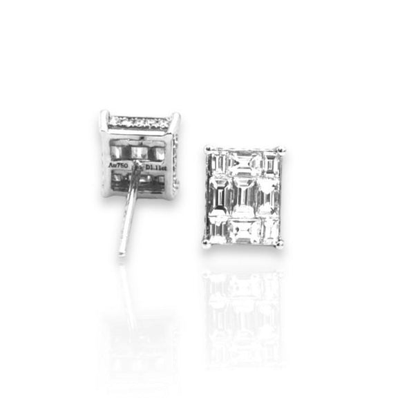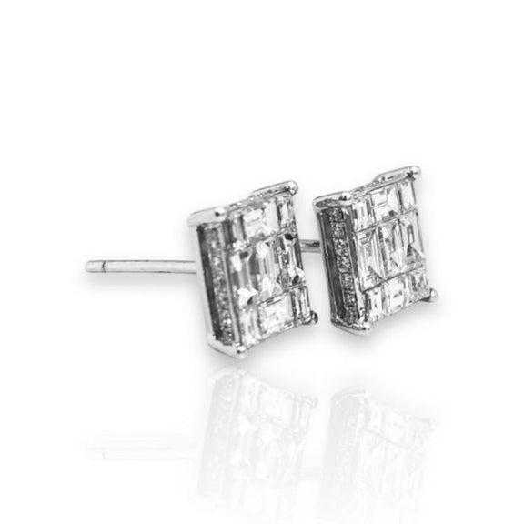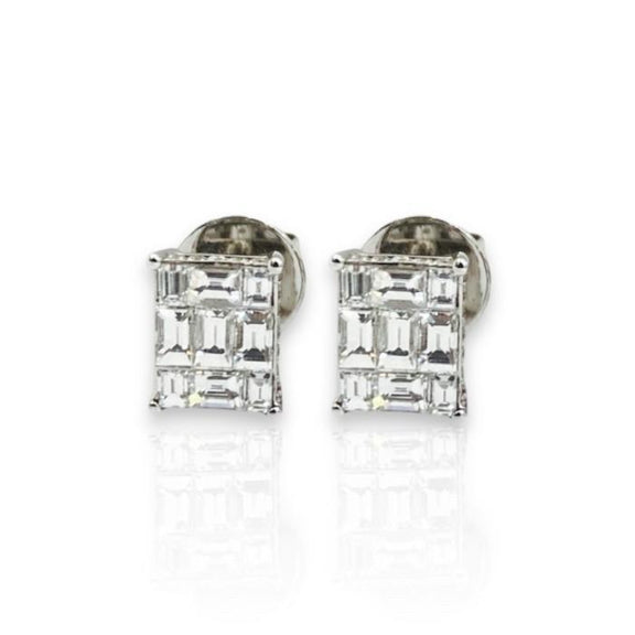 Square diamond earring 18k whte gold/anting berlian tusuk kotak -Diamond Jewelry