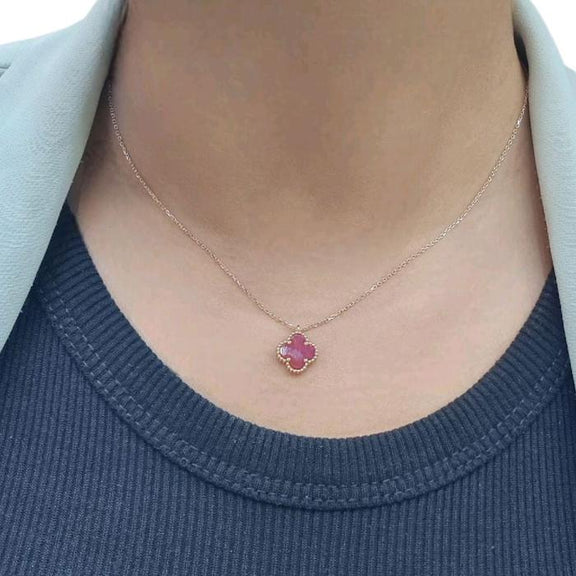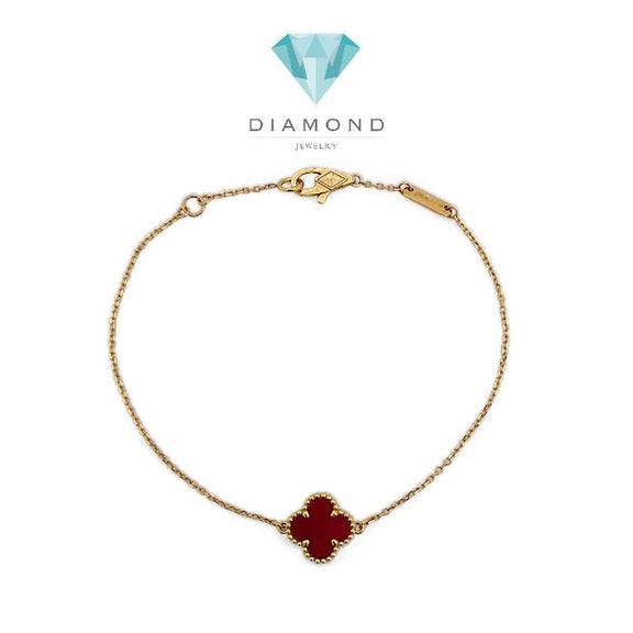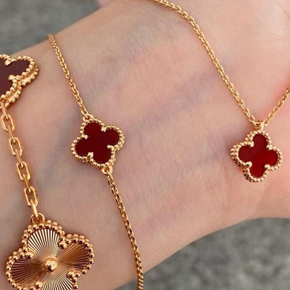 Sweet Clover Red Charnelian 18K Necklace/Bracelet/Earring/Kalung/Gelang/Anting Emas Fashion-Diamond Jewelry